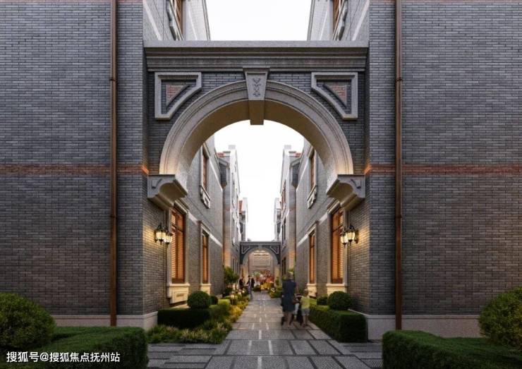 拱形门坊及雕花复刻湖州会馆、菱形山花元素还原老建筑印记、巷道风貌铺装叠加红砖清水墙赓续衡复风貌,演绎百年摩登风尚。