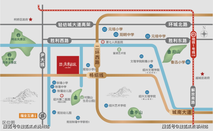 在纵向的城市综合发展轴上,大城西板块以通达的交通路网为锚点,一条二环西路高架,串联起以镜湖为核心的绍兴“新环线”和以老城区为核心的绍兴“老环线”,还有杭绍台高速等构成庞大的路网架构,通达四方。在横向的山水文化景观轴上,烟波浩渺八百里鉴湖风景名胜区(规划)作为绍兴文脉之源,润泽着城市的文化底蕴。