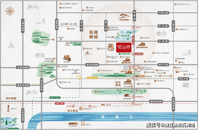 地铁9号线五洲路站100米,无缝换乘1/3(二期在建)/18号线(在建),邻近秋石高架、东湖高架、望梅高架,近揽黄金十字轴线—荷禹路、五洲路,通达全城;临平高铁北站(规划)、沪乍杭铁路,极速融沪,连接长三角。