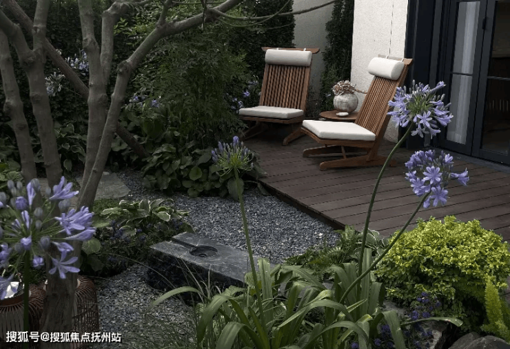 池边种植的多种水边植物降低了人工的存在,丰富了小院的景观视线,并配以不规则的花岗岩石块,营造出一种仿若天成的感觉,淳朴自然。让这方鱼池成为小院儿中的灵魂所在,为小院增添了几分生机与灵动。