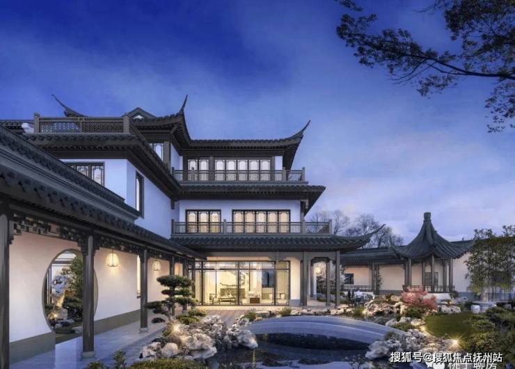 在园林形制上,引入曲石折桥、掇山理水、镜湖邀月、湖石蹬道等节点,亭台、石桥、连廊、水系巧妙而设,动静之间,变幻无穷……借以山水写意,于咫尺之内造乾坤,一个“微缩版”的苏州园林亦可“私藏”。