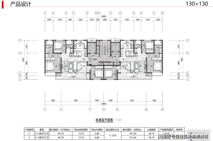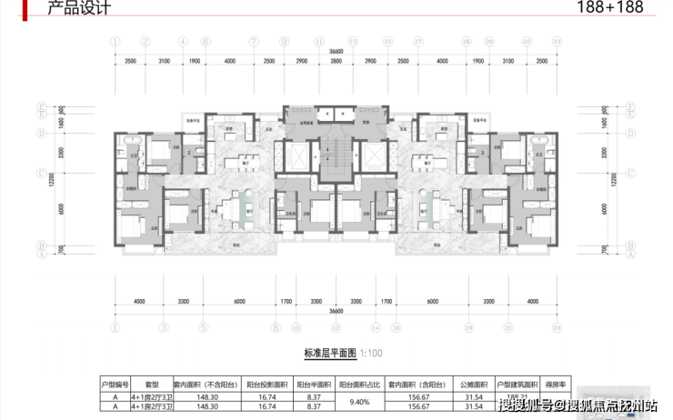 先看看项目目前在售 建面约143㎡的拥有超大面宽的四房两厅三卫户型。