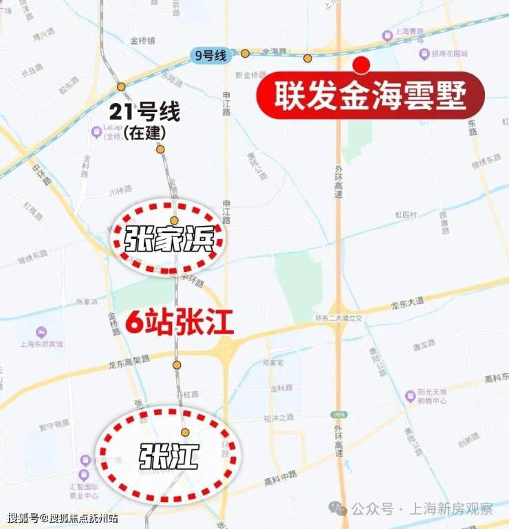 未来21号线开通后,从距离项目最近的金海路出发,4站张家浜、6站张江。