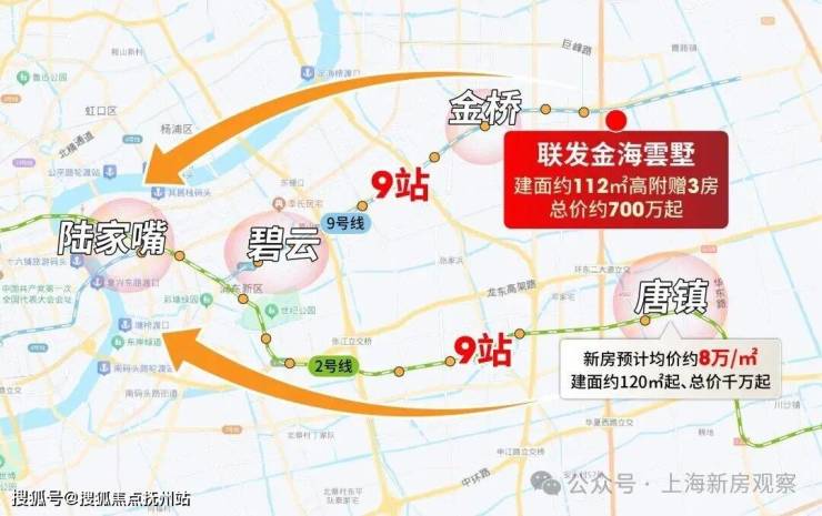 张江辐射的唐镇、前滩辐射但无地铁的三林而言,金桥东的交通能级就太强劲了;通过9号线,2站金桥核心、9站陆家嘴。要知道8万+唐镇到陆家嘴同样是9站,但房价差了近200万+!