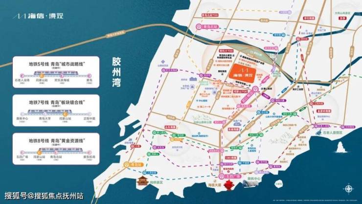 更关键的是,项目距离“闫家山站”这个三地铁换乘枢纽只有约200米。5号线、7号线、8号线(在建)交汇,未来无论是去五四广场、崂山,还是去胶东机场,都在半小时生活圈内。这种“地铁上盖”的便捷性,在主城改善盘里绝对是硬通货。