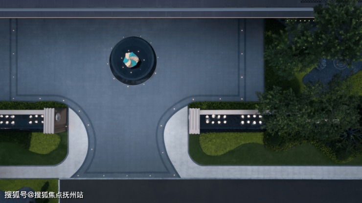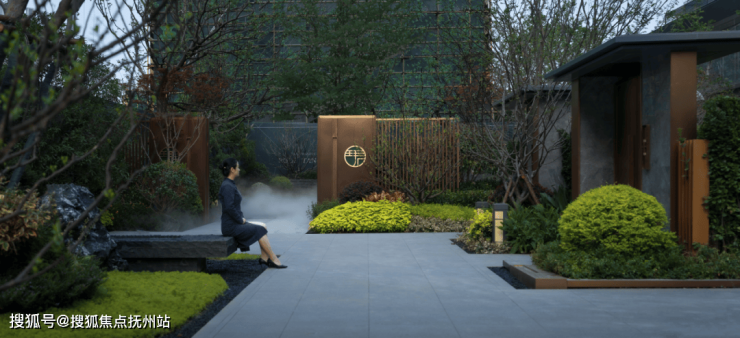 通过景墙屏风与林的穿越转换,以叠水林境诉说着园林的品质与艺术氛围,塑造一幅绿影环绕,叠泉流淌的景象,让一切都回归自然生活同时也寓意着社区的高端气质。