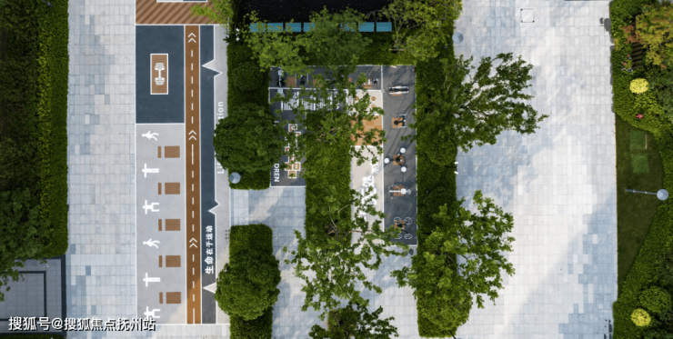 森氧逐影,绿林环绕的运动健身区,林下设置健身活动器械,搭配环绕全园的活力跑道,强调健康乐活的生活理念,共同构建园区运动空间体系。