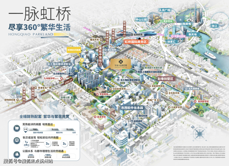 大虹桥4.0科创规划西延赵巷以“一城两翼、一带三核”战略,串联北斗产业基地、市西软件园、华为研发基地三大科创极核,未来将承载数十万高知人才。华发虹桥四季踞守黄金中轴,占位长三角数字产业新高地,与城市共生长。(信息来源:青浦发布)