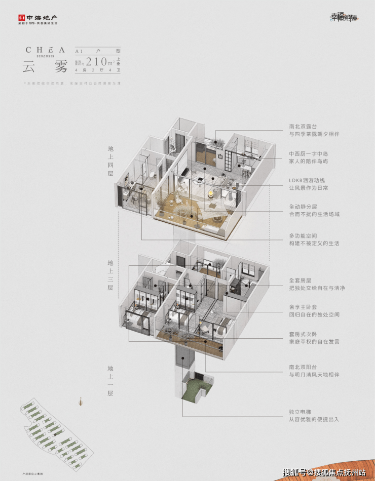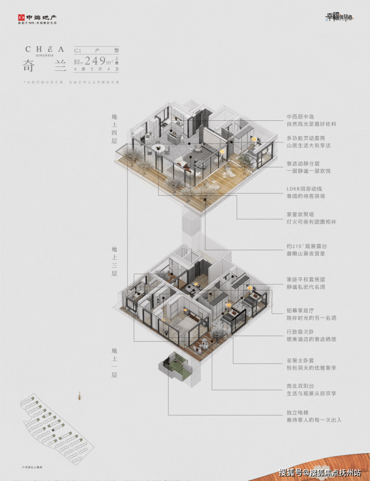 近年来,低密市场尤其叠院产品已经“卷”掉了中间层,只保留上下叠。而月陇云岚更是用两道私梯入户,将原本的上下叠变得更为独立,且更加私密。