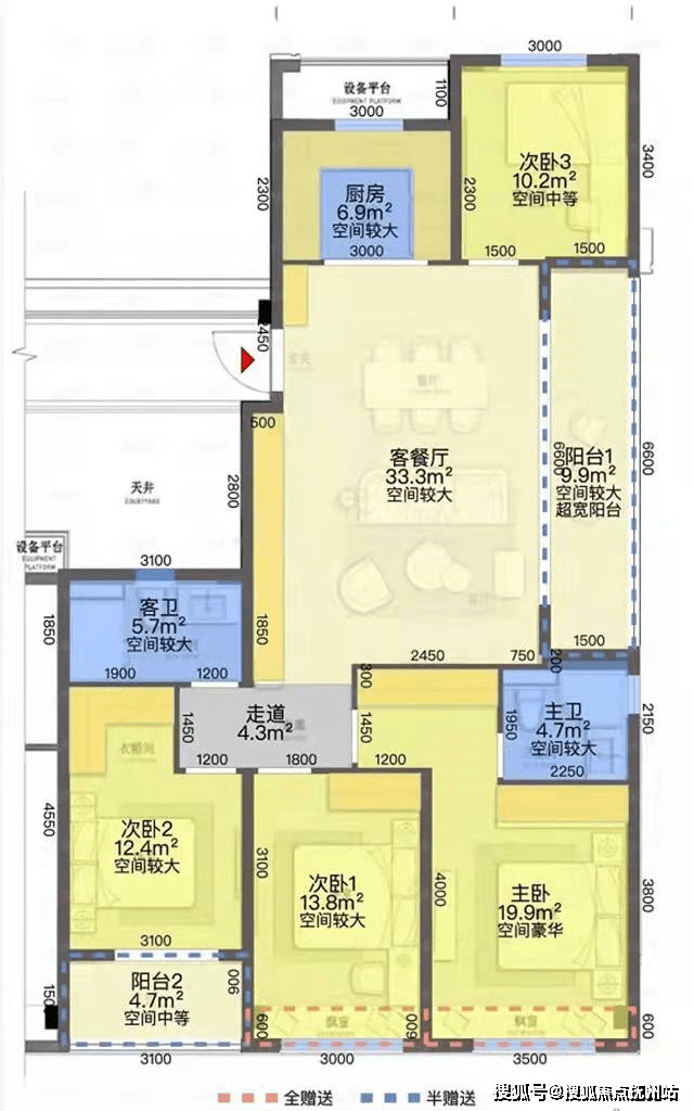 户型方面:三种户型整体来看,都比较倾向于业主的主观意识,采用大开间、大飘窗、大阳台的设计,营造空间感与尺度感。
