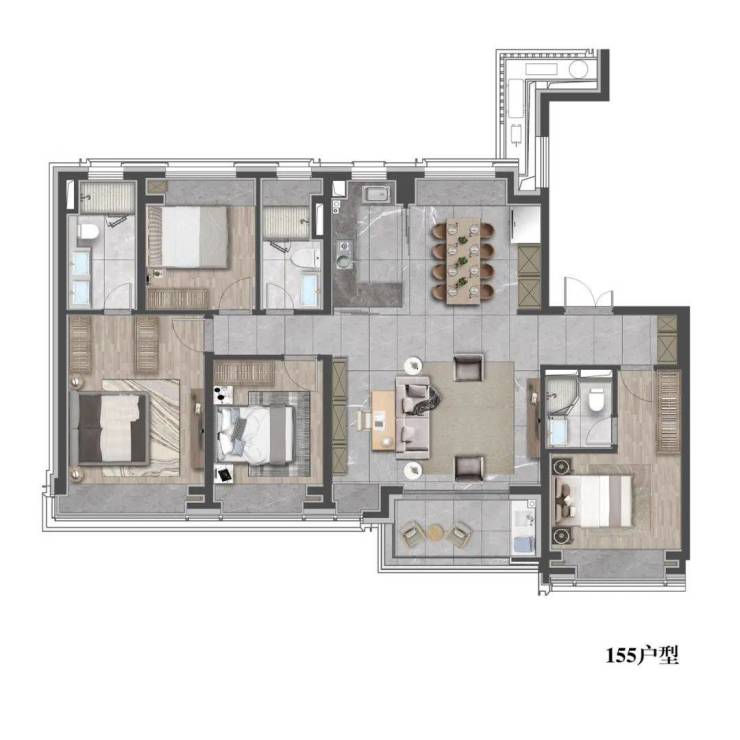 所有卧室均带飘窗,居住起来不会感到压抑,采光更佳