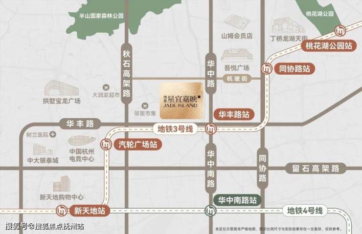 星宜嘉映府如今让梦想成真。项目直线距离武林广场约8km,与武林广场同属拱墅。两者间最好的丈量方式就是地铁,从星宜嘉映府家门口的地铁3号线华丰站(项目距离地铁站仅约200米)出发,8站地铁,即可抵达武林核心。