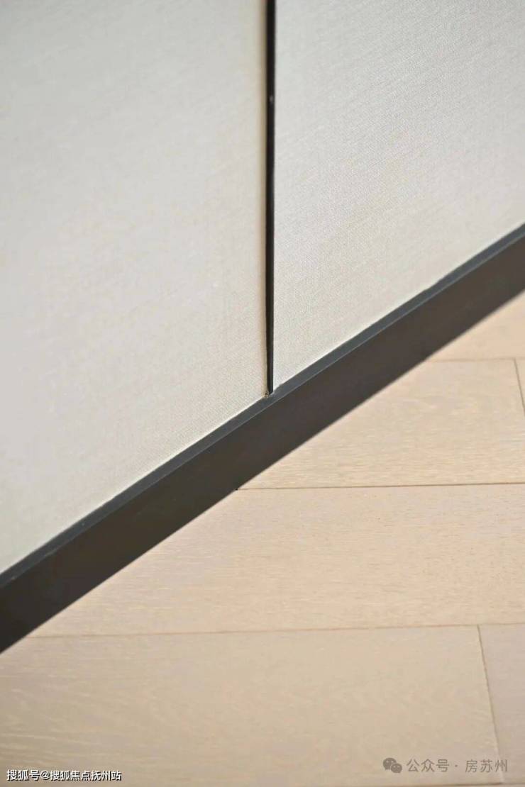 比如地板是斜拼设计、卫生间墙面错拼瓷砖、全屋金属踢脚线,每一处都透着细节至上的品质感。