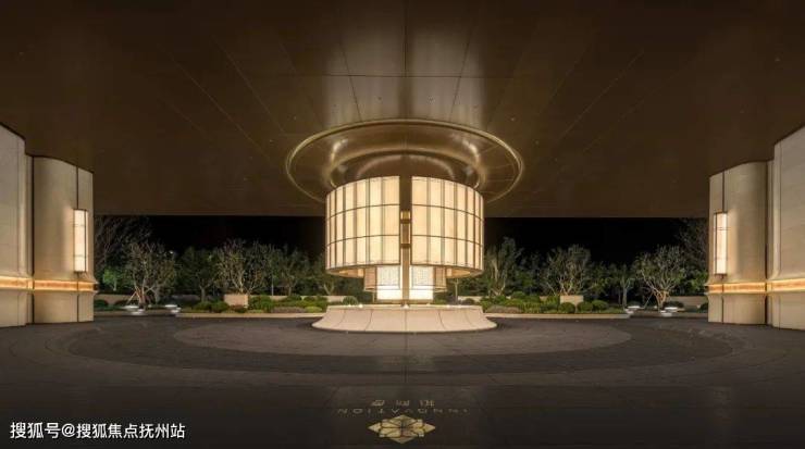 招商序藉由“吴淞灯塔”及其形制,原创落客雕塑“源流”,保加利亚进口的沉香米黄石材的底座,搭配以安哥拉黑大理石、云石玻璃,营造温润归家昭示。整个前庭形成艺术感与实用性兼具的环岛式落客区,进一步提升仪式感。
