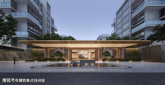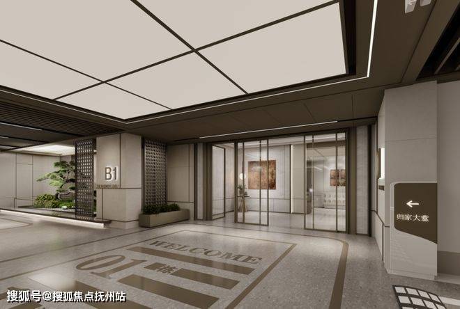 4、极具仪式感的酒店式大门。以大面积奢石、铝板、玻璃打造极具仪式感的城市玄关,将精致、隐奢展现得淋漓尽致。