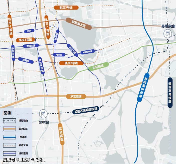 在交通层面,苏通湖城际铁路、通苏嘉甬铁路构建起1-1.5小时城际圈,常台高速、沪常高速贯通南北东西,中环南线与独墅湖南隧道的通车,将湖西南片区与园区的时空距离缩短至5分钟左右。加上轨交2、3、7号线的交织成网,助力湖西CCD实现了与苏州全城的高效连接。