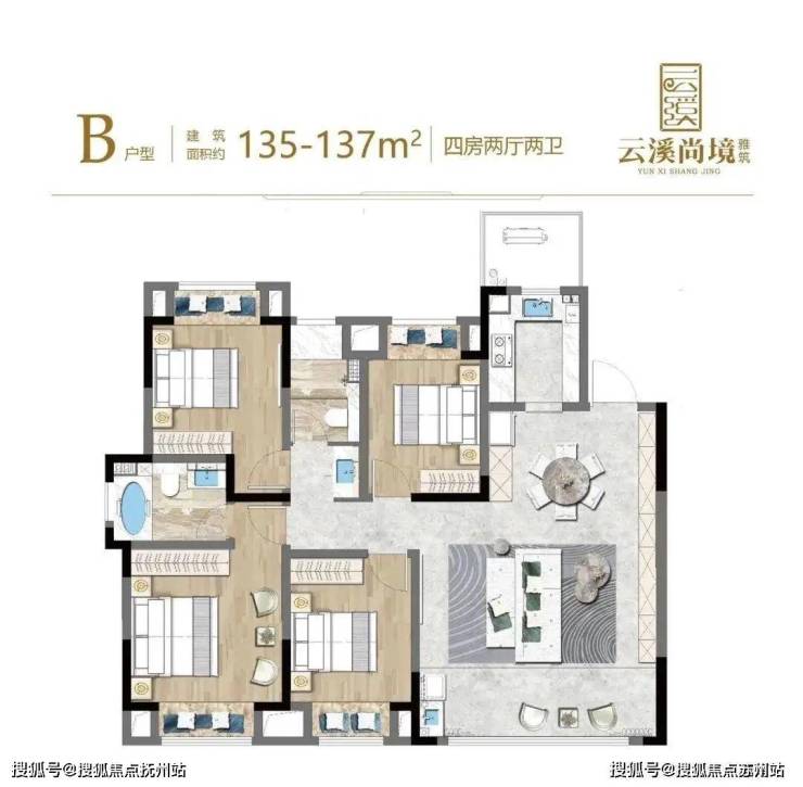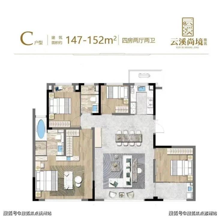 约147㎡王炸户型——4房2厅2位,近14.5米大面宽满足生活大师对日常的一切想象