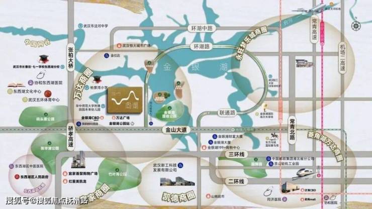 项目距离地铁站直线距离450多米,宜家、东西湖万达广场、协和金银湖院区都在其旁,项目开车到花园道约15分钟,到国广约20分钟,到武昌内环约30分钟。
