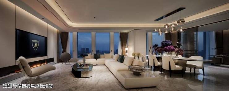 约420㎡“超跑”四房户型,更拥有约14米的公区弧形巨幕面宽,演绎兰博基尼顶级超跑“闪电”的极致型格。