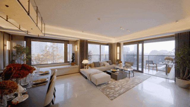 搭配静谧社交的静心庭院、水榭林间、栖心林径、滨河长廊,以逐渐放松的“门-厅-堂”归家体验归家就是度假的开始。从第一眼就震撼的约32米宽、6.4米高宝门廊,到营造四季花厅的落客庭院、再到约200㎡社区礼仪大堂。