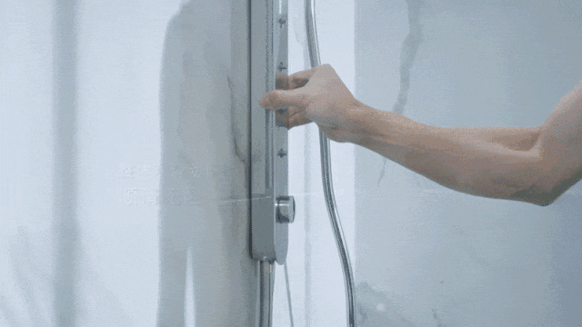 最酷的是淋浴房的摩恩花洒,不仅是即开即热的恒温龙头,而且顶喷可根据身高滑动调节,还附带侧喷按摩功能。