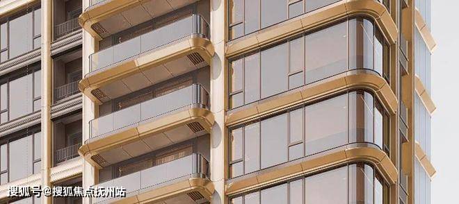 建筑立面,主体以大面积玻璃结合铝板为主,来完成现代建筑的美学表达,经典香槟金色调凸显现代建筑的静谧永恒和高品质感,基座采用浅色石材。