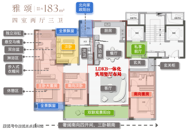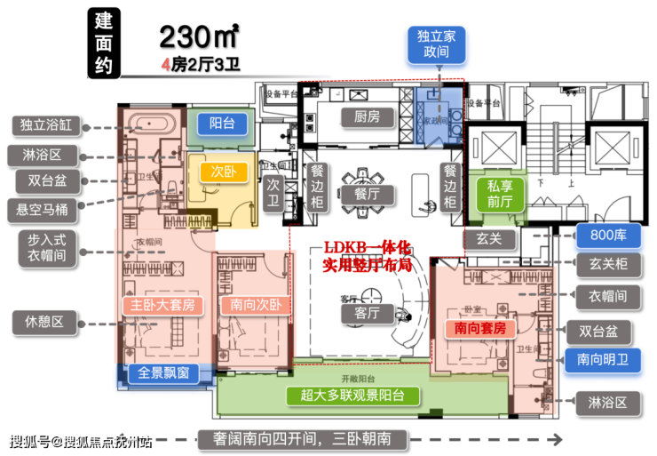 这个户型在空间、场景、功能等领域,做出了比肩甚至超越别墅的突破性设计。南向双套房,尊崇十足;次卧套也是南向明卫,彻底的阳光革命!南北贯通大主卧超豪华配置、独立家政间+800库、强大收纳体系,将居住的舒适度、功能性与仪式感完美融合。