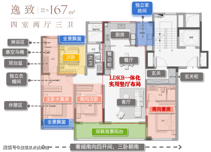 尺度升级,拥有独立家政间,高端豪宅必备!引入“南向双套房”舒适搭配,三代同堂都无压力,尊重每一代人的私密需求。