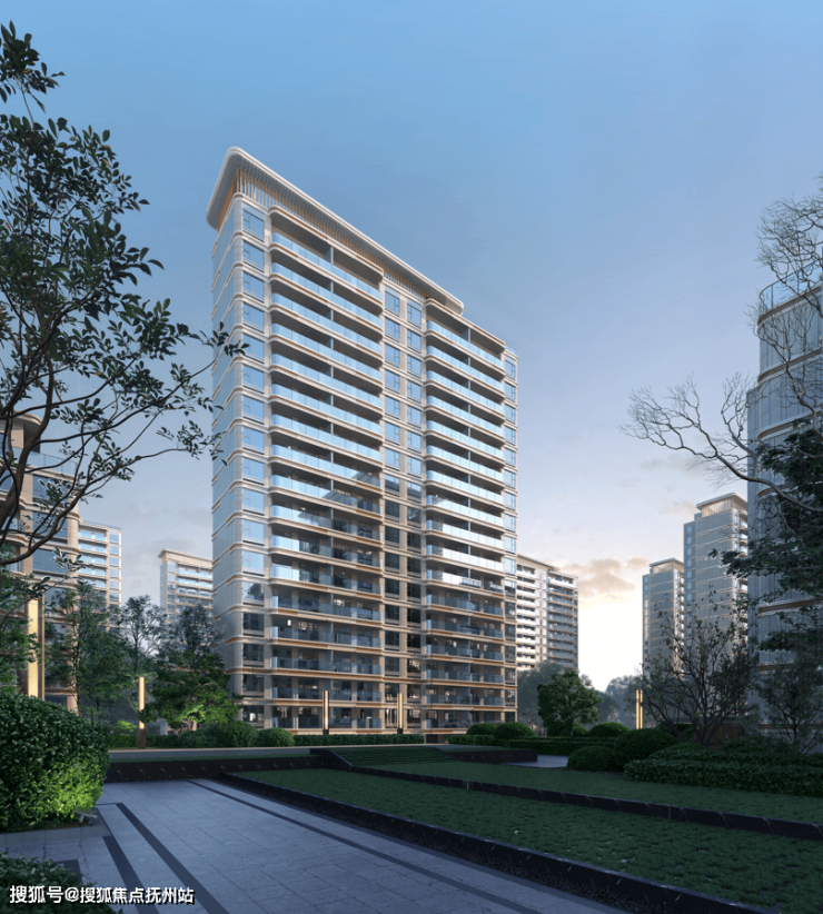 项目以金地高端峯汇plus立面为蓝本,通过灵动曲面的运用创造极具标识性建筑形态,曲面的温润柔和,更体现出建筑的细节与价值感;科学的归家流线设计融合酒店式体验,为项目塑造五重归家礼仪,实现酒店化住区设计;社区景观结合沿河公园打造全龄无界交互的亲水森居生活。
