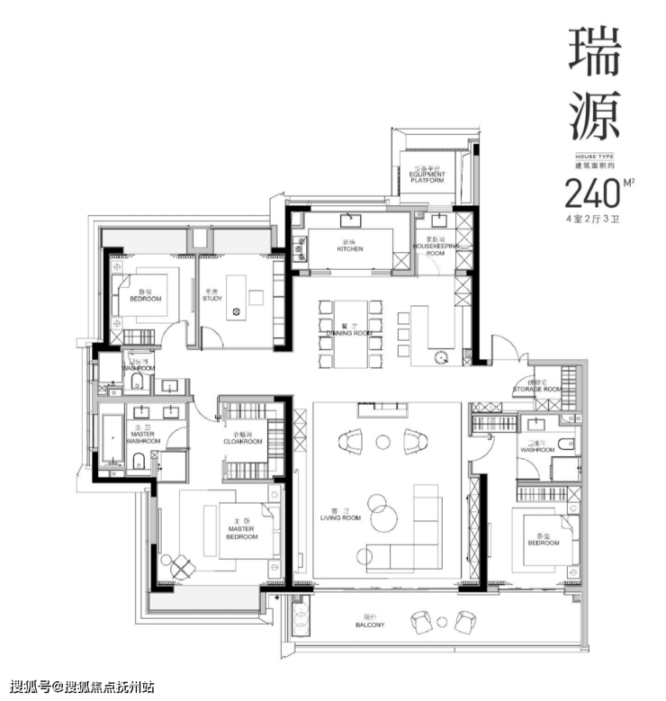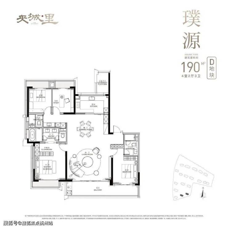 而建筑面积约190㎡户型,在建筑面积约188㎡户型基础上,将阳台升级至双开间阳台,拓宽了居家的视野与采光感受。