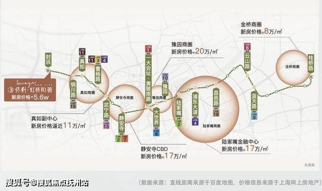 2.一线繁华,高质价比:无需换乘,一线直达繁华市区。相较14号线沿线房价,新天地约21万/㎡、静安寺CBD约17万/㎡、豫园约20万/㎡、陆家嘴约17万+/㎡、真如约11万/㎡……同样在14号线上的保利·虹桥和著,单价5字头,极高的性价比,让购房者在同级别产品中,拥享更好的地段、更好的生活圈,相当于用外环外的价格,买下中环级的地段+产品力!
