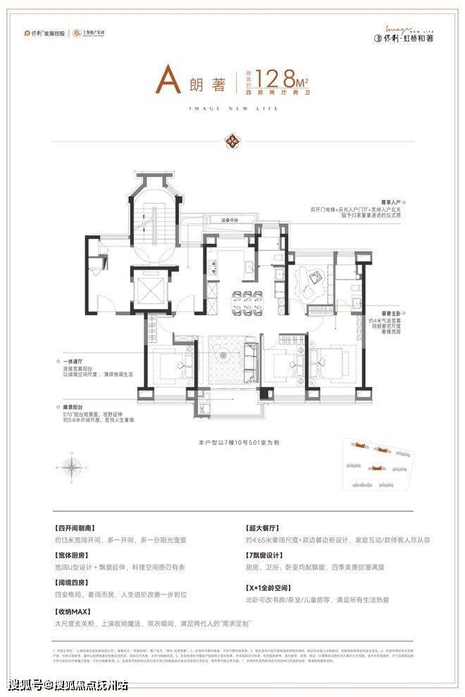 ◎真四开间朝南:据统计,2024年至今的上海新房市场中,建面在125-130㎡产品只有约9%做到了真四开间朝南,而地铁口的4房产品更是少之又少(数据来源于网络)。保利·虹桥和著建面约128㎡户型真四开间朝南,南向总面宽超13米,对比新房市场同面积段常见的10米面宽,采光和视野媲美千万级豪宅。
