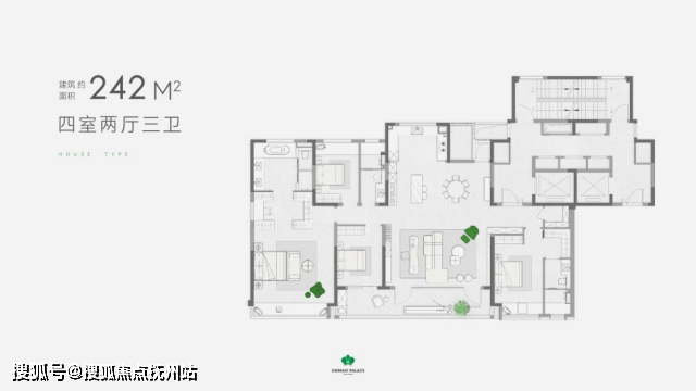 在苏州,200㎡以上的核心区大平层本就是稀缺资源。而狮山金茂府的建面约242㎡户型,则将这种稀缺性与产品力结合到了极致,堪称收官阶段的“压轴珍品”。