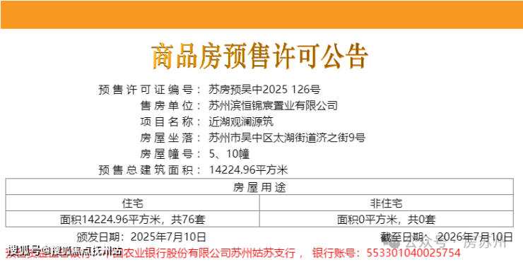 2025年7月10日,项目第三批房源领证,共76套,位于5、10号楼,货值4.9亿。