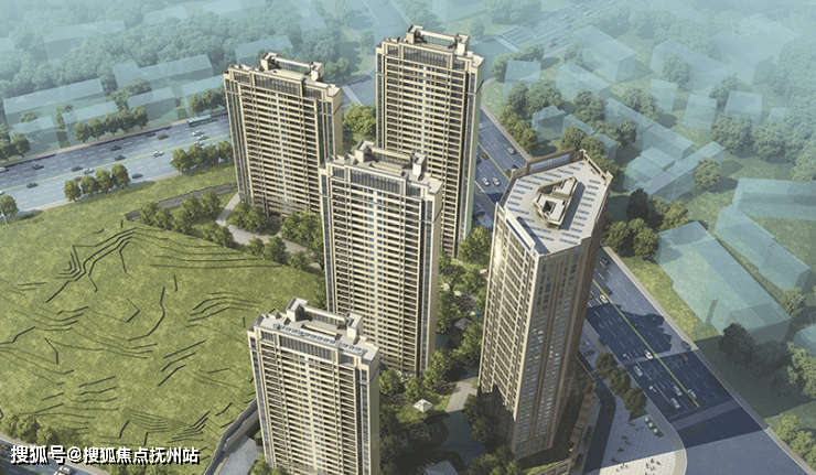小区规划:小区北侧局部抬高约 10 米,减少灰尘和噪音影响。外立面线条简洁,窗墙比较高,景观设计融合苏式园林意境与当代环境,打造有老年健康广场、儿童主题乐园、有氧健康跑道等多个功能空间。