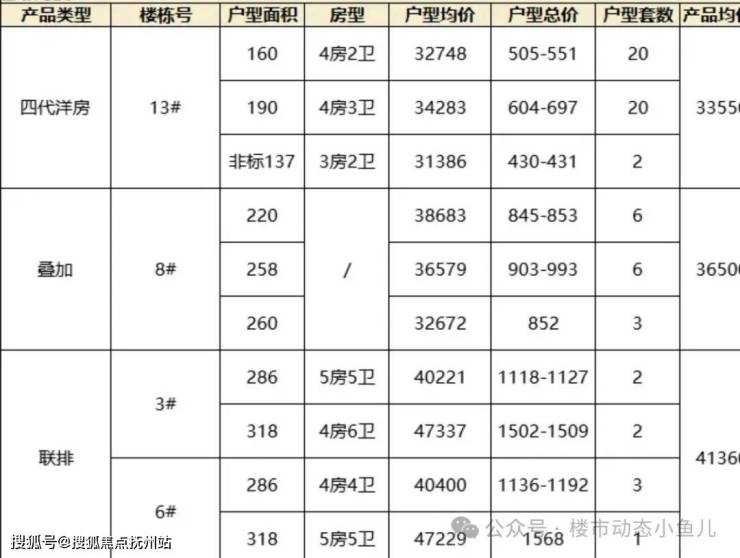 联排均价约41360元/㎡叠加均价约36500元/㎡洋房均价约33550元/㎡