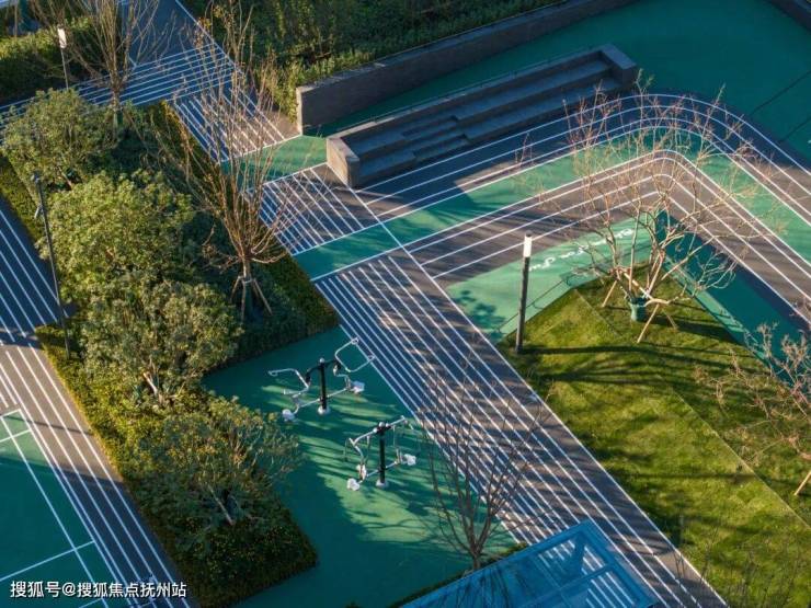 实现儿童友好的下沉空间【染翠】,通过纵向丰富的高差,设计单边廊架和休憩区以及绿草坪,无论遛宠物还是露营,都是一道亮丽的风景线。