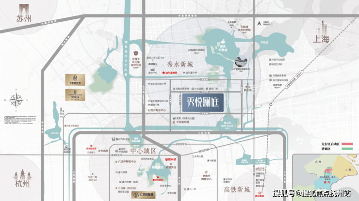 发展目标:秀水新城以打造“长三角一体化示范协调区的EOD新城”为目标,未来形成“一心、一湖、一轴”格局。