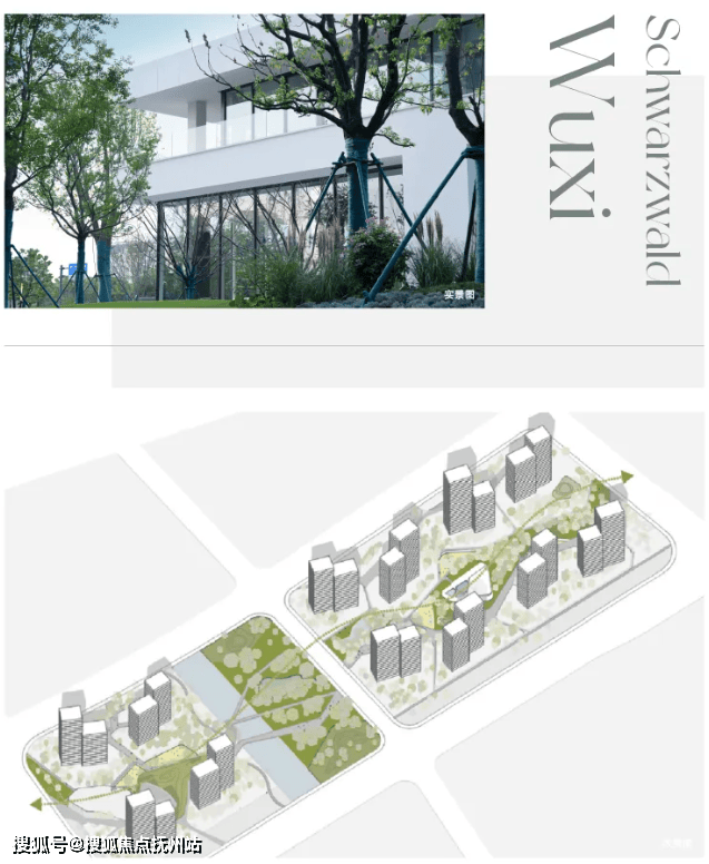 德国WES景观设计师事务所将“建筑散落于绿色之中,人们穿梭于自然之中”的设计理念带到无锡,为新发中鹰·黑森林项目整体设计了“一心、二轴、围合一园”的景观结构。