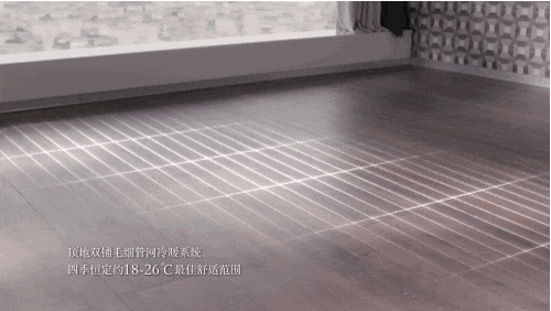 毛细管冷暖系统搭配地源热泵,不仅能将温度恒定在最适宜人体的20-26℃之间,还能实现冷暖分区的自如切换,告别传统空调冷热不均和空调风直吹问题。