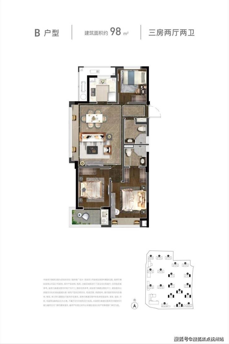 - 98㎡边套双阳台+南向10.8米面宽,采光碾压市面110㎡户型。
