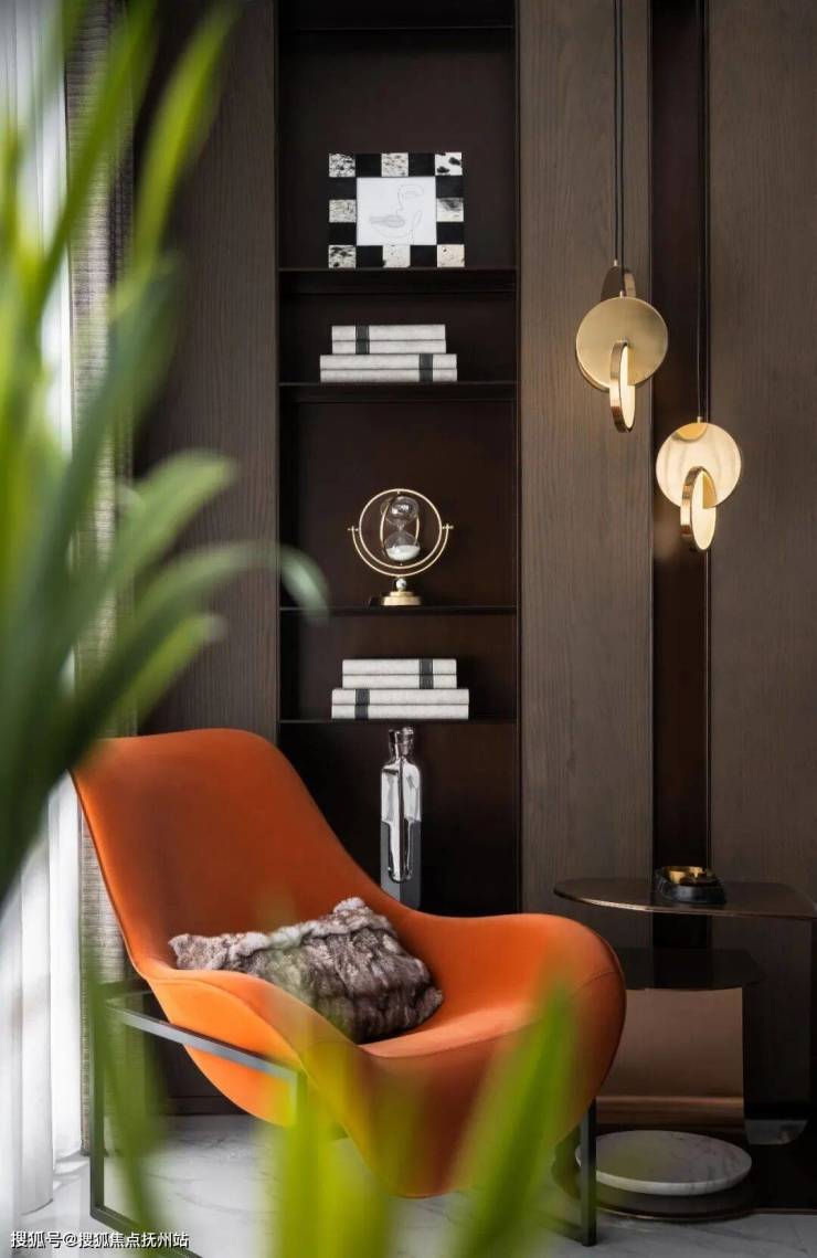 整体色调温暖奢华,将抽象的自然意象,化为简约的视觉符号;用琥珀色和橙色点缀空间,多了一点活泼加了一丝灵动, 带来多维度的层次感;