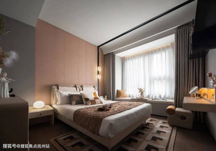 女孩房以米灰色与粉色为主基调,配合橘色和豆沙色的点缀,体现女孩天真娇俏的同时凸显出善良与精致。