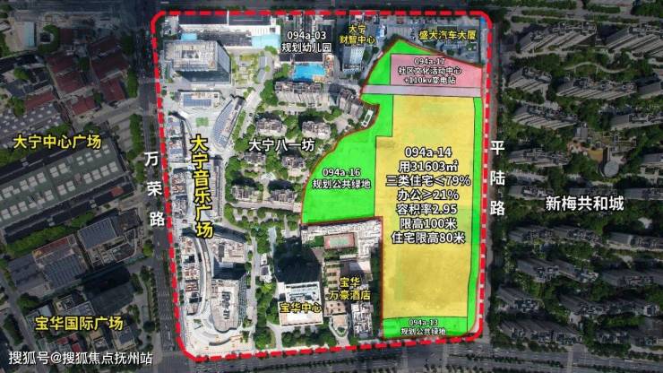 该项目位于大宁公园北侧、东临新梅共和城,占地面积约31603㎡,容积率2.95,限高100米(住宅高度不超高80米),计容面积约93229㎡,其中住宅占比≤79%,办公占比≥21%。