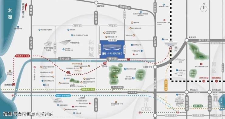 公共出行方面,小区出门不到500m就是有轨电车2号线树山站,仅需坐一站就可以到达科技城核心,6站就可以到达苏州新区站;同时,项目紧邻中环北线与西线的交叉口,便捷通往苏州主城区。
