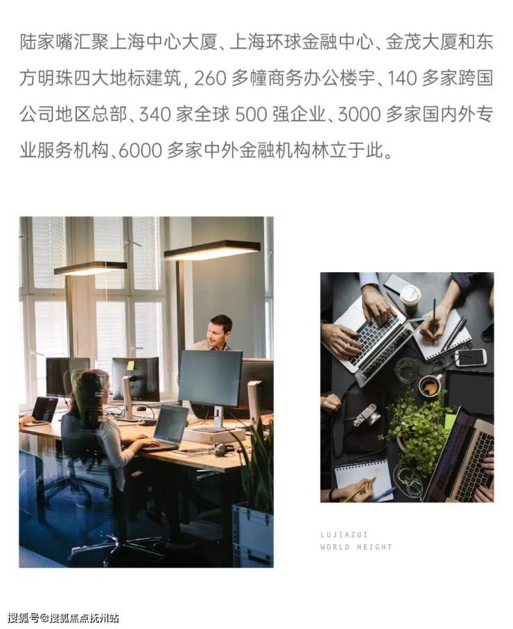 陆家嘴汇聚上海中心大厦、上海环球金融中心、金茂大厦和东方明珠四大地标建筑,260多幢商务办公楼宇、140多家跨国公司地区总部、340家全球500强企业、3000多家国内外专业服务机构、6000多家中外金融机构林立于此。