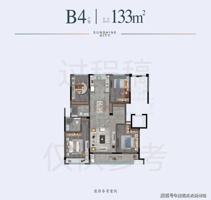 项目主力户型分为 建面约89㎡三房两卫、约130㎡四房两卫。首开建面约89㎡、131㎡、133㎡。