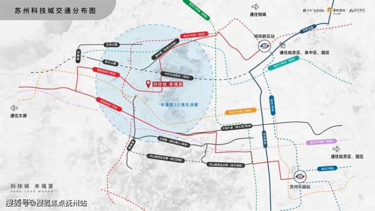 紧邻太湖大道主干道,有轨电车1号线与地铁1号线换乘,有轨电车2号线通达新区站。大阳山隧道首站)——中环西线北延,通达浒墅关,相城,园区。