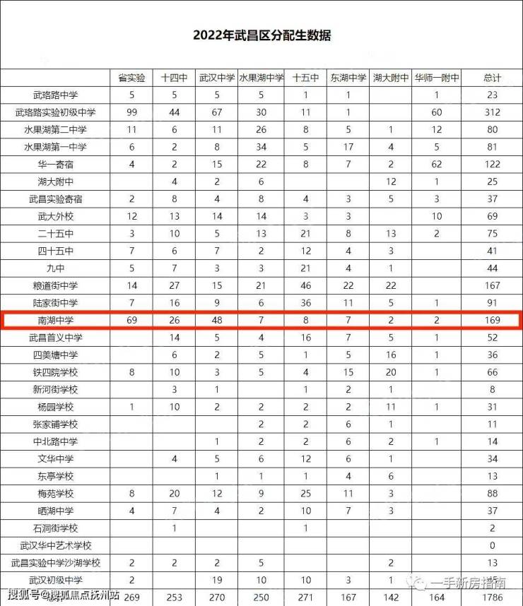 南湖中学作为全市最优质的公办初中,先后荣获“湖北省中小学综合实力100强”“湖北省科普示范学校”“武汉市中小学校园文化建设先进学校”等光荣称号。2022年普高率79.1%,示范率67.4%,中考成绩综合排名位列武汉市年度评级榜第12名;省实验等高中给予南湖中学的分配生名额高达169人,高额的分配生占比,被誉为省实验的后花园。