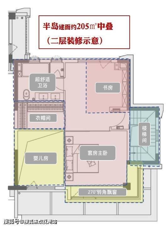还有近9米的转角阳台,只计算一半的面积,二层270度转角飘窗全赠送……这个建面约205㎡的中叠,实际套内面积可以媲美市面上建面约260㎡的大平层产品。